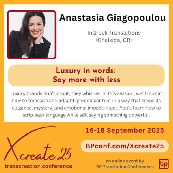 Anastasia is a native Greek freelance translator and copywriter working in English and Greek, with a strong background in language, communication, and marketing. She specializes in marketing translation, transcreation, and creative copywriting.