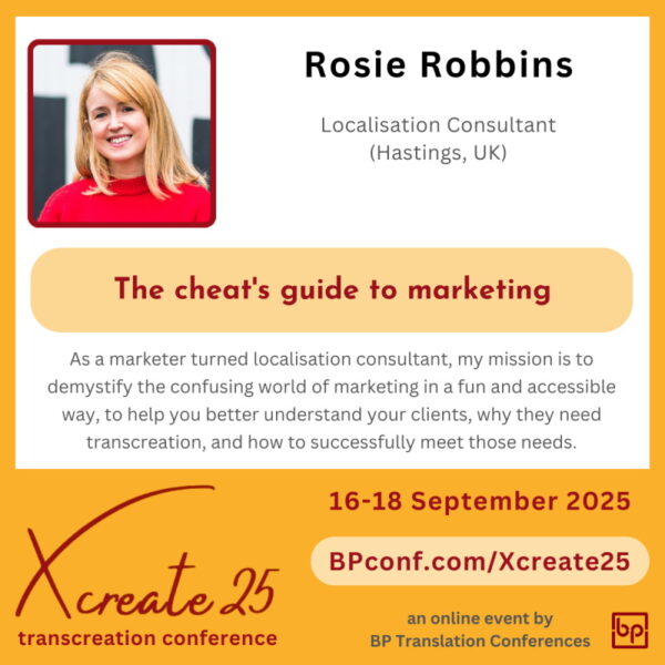 Rosie Robbins is a translator and localisation consultant with a background in marketing – she worked in consumer PR at agencies such as Ogilvy before joining the localization world in 2015. As a result, she is passionate about helping marketers and translators to work better together.